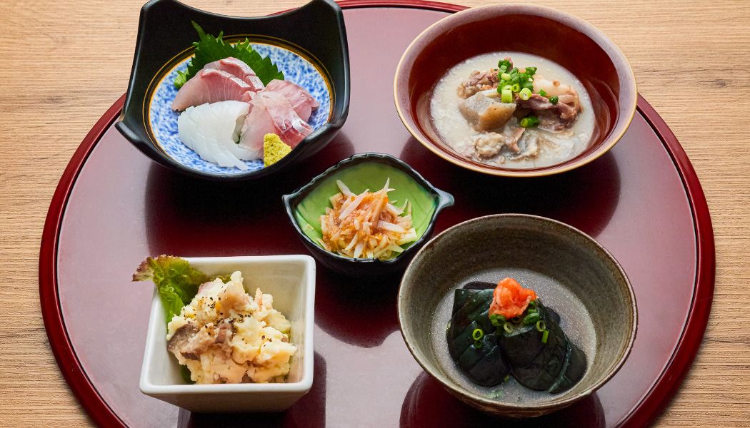 日替わりおつまみ5品+お好きな飲み物1杯(専用メニューからお選びください)写真はイメージです。実際の料理とは異なる場合があります。